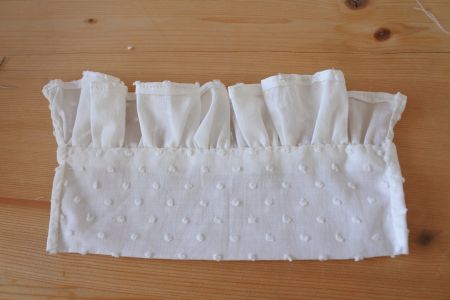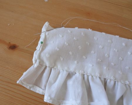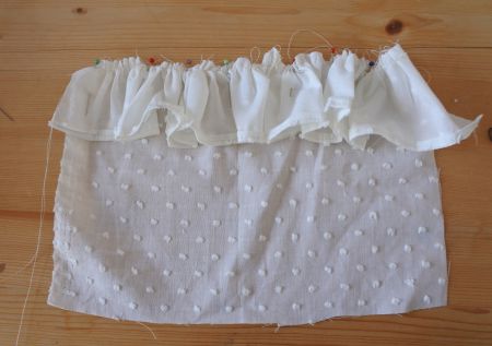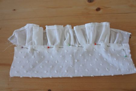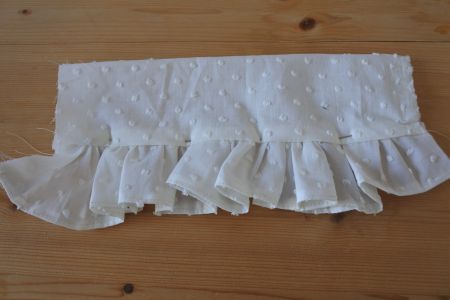 - Repliez sur 1 cm la bordure, et assemblez-la aux froufrous.