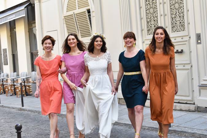 J’ai tout de suite pensé au patron proposé par Artesane pour suivre leur nouveau cours couture : “J’apprends à coudre ma robe de mariée”, avec un modèle de robe qui peut se décliner simplement en robe de cérémonie. Edit : après avoir publié cet article, l’équipe d’Artesane m’a apporté cette précision : “Le patron est bien inclus dans le cours avec 4 variations de dos nus ! Il suffit juste d’ajouter des poches plaquées, faciles à patronner!” Le cours “Je couds ma robe parfaite”, peut également convenir pour hacker ce modèle !