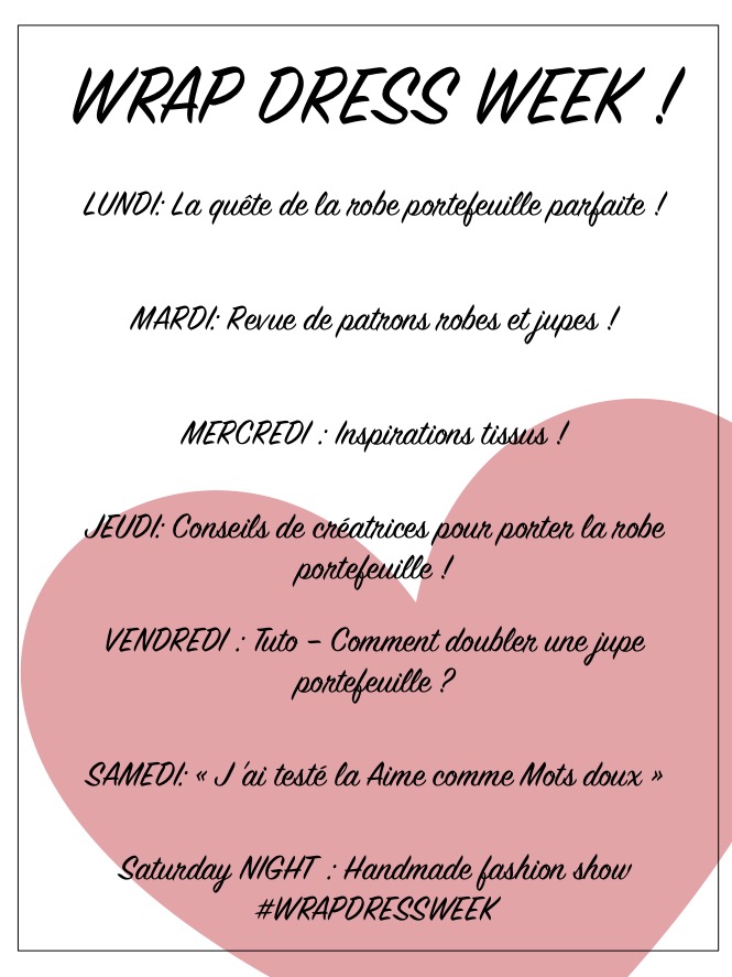 Voici un petit aperçu du programme concocté ! Avec le meilleur pour la fin ! En effet, tout au long de cette semaine, je vous propose de partager vos propres robes ou jupes portefeuilles : soit les projets que vous souhaiteriez coudre soit des modèles déjà réalisés, avec le #wrapdressweek ! Je me ferai un plaisir de reposter en story l’ensemble de vos réalisations, un bouquet de créations pour un défilé digital et handmade fashion ! Pour vous féliciter de toutes vos cousettes, Makerist offrira une surprise à chacun des participants à ce défilé : un code réduction à appliquer sur les patrons de couture de votre choix (Maison Fauve, Atelier Scammit, Atelier Vicolo, I am Pattern, Ma petite garde robe et plein d’autres ! )