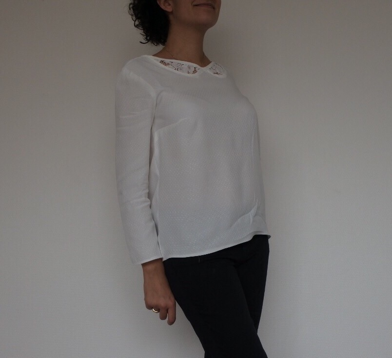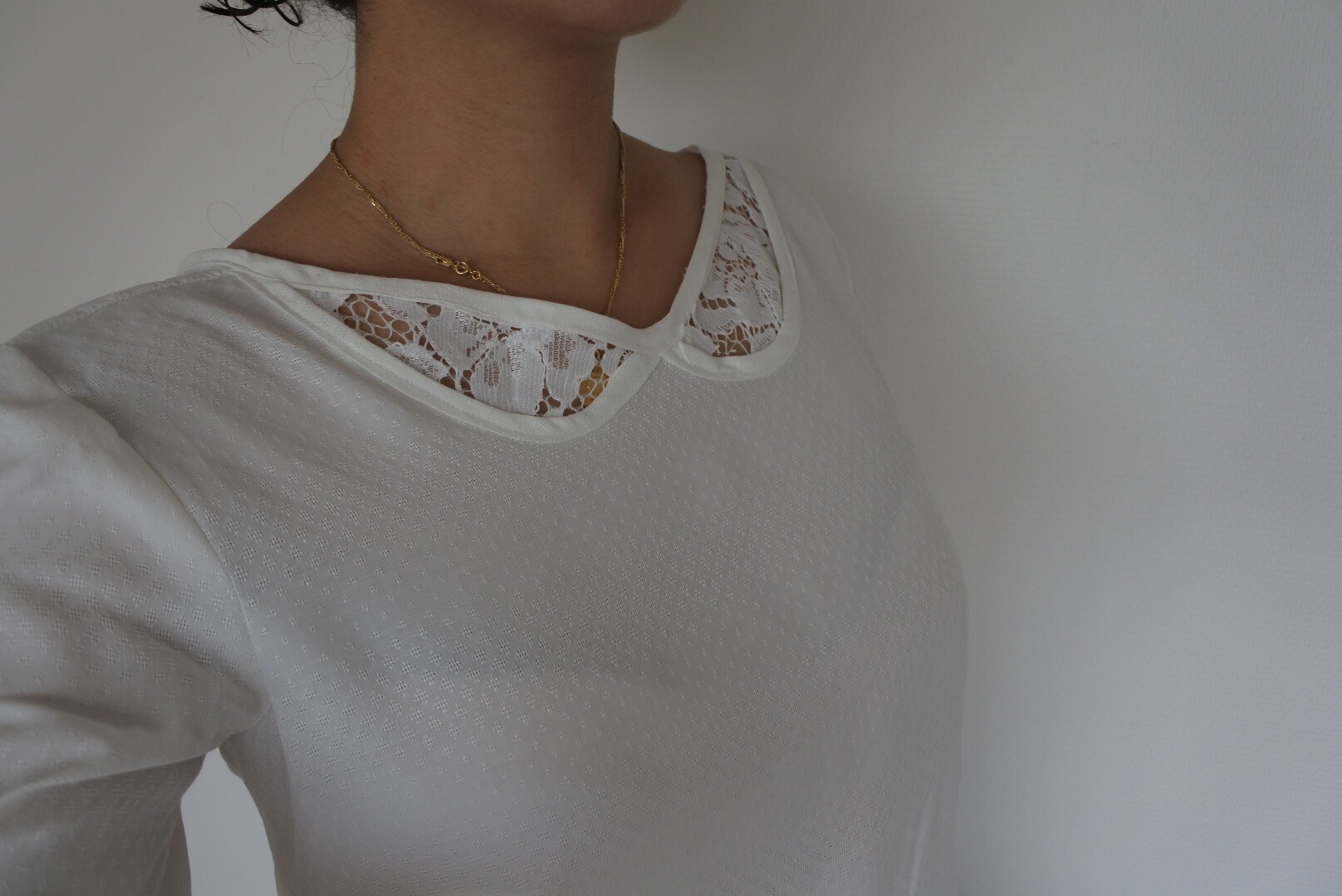 Concernant la pièce finale : - Je suis très contente de ce petit col , rehaussé par de la dentelle (il aurait peut être mérité un peu plus d’application de ma part)