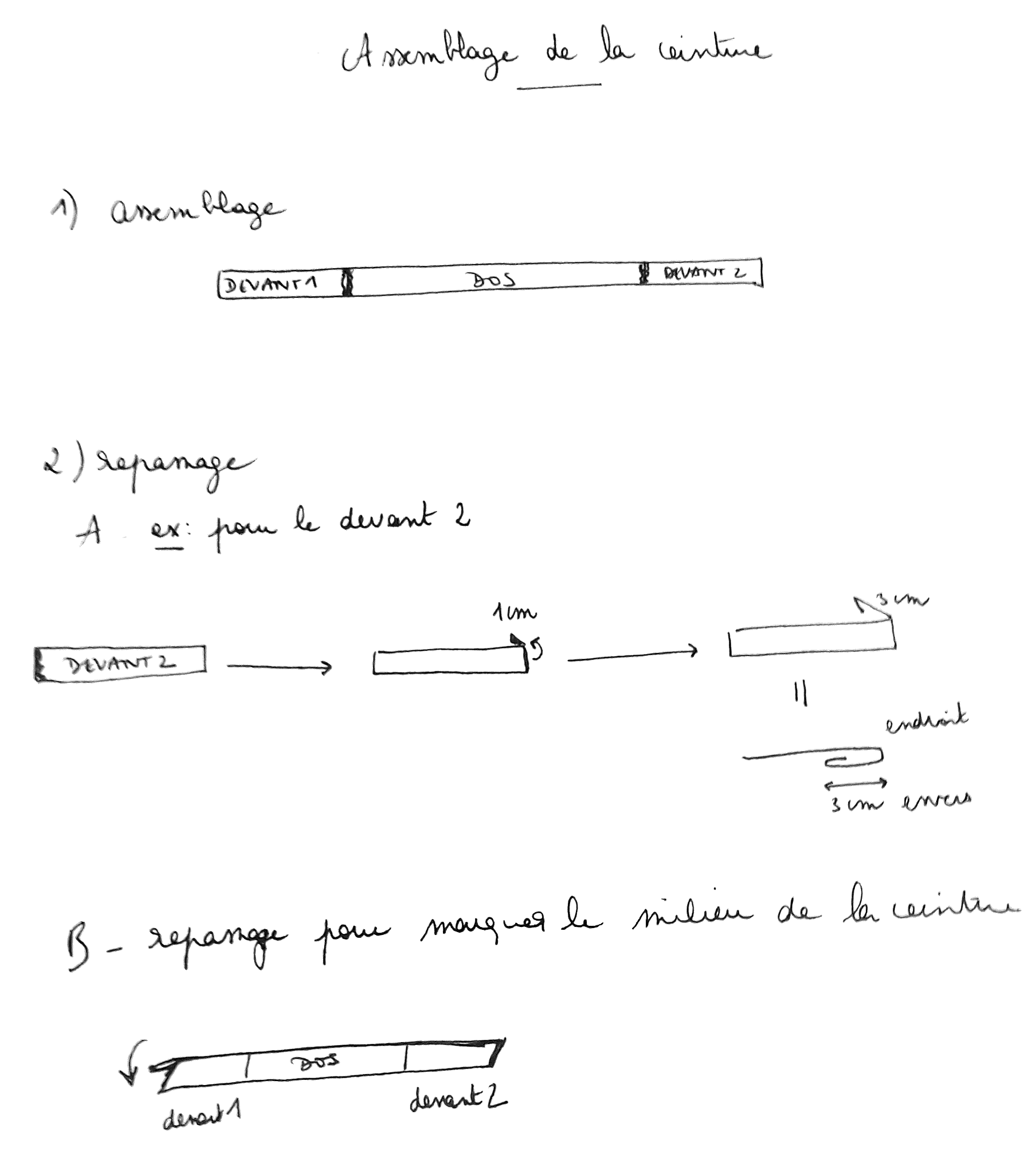 - Assembler la ceinture dos avec les 2 pans des ceintures devant, en les cousant sur les côtés