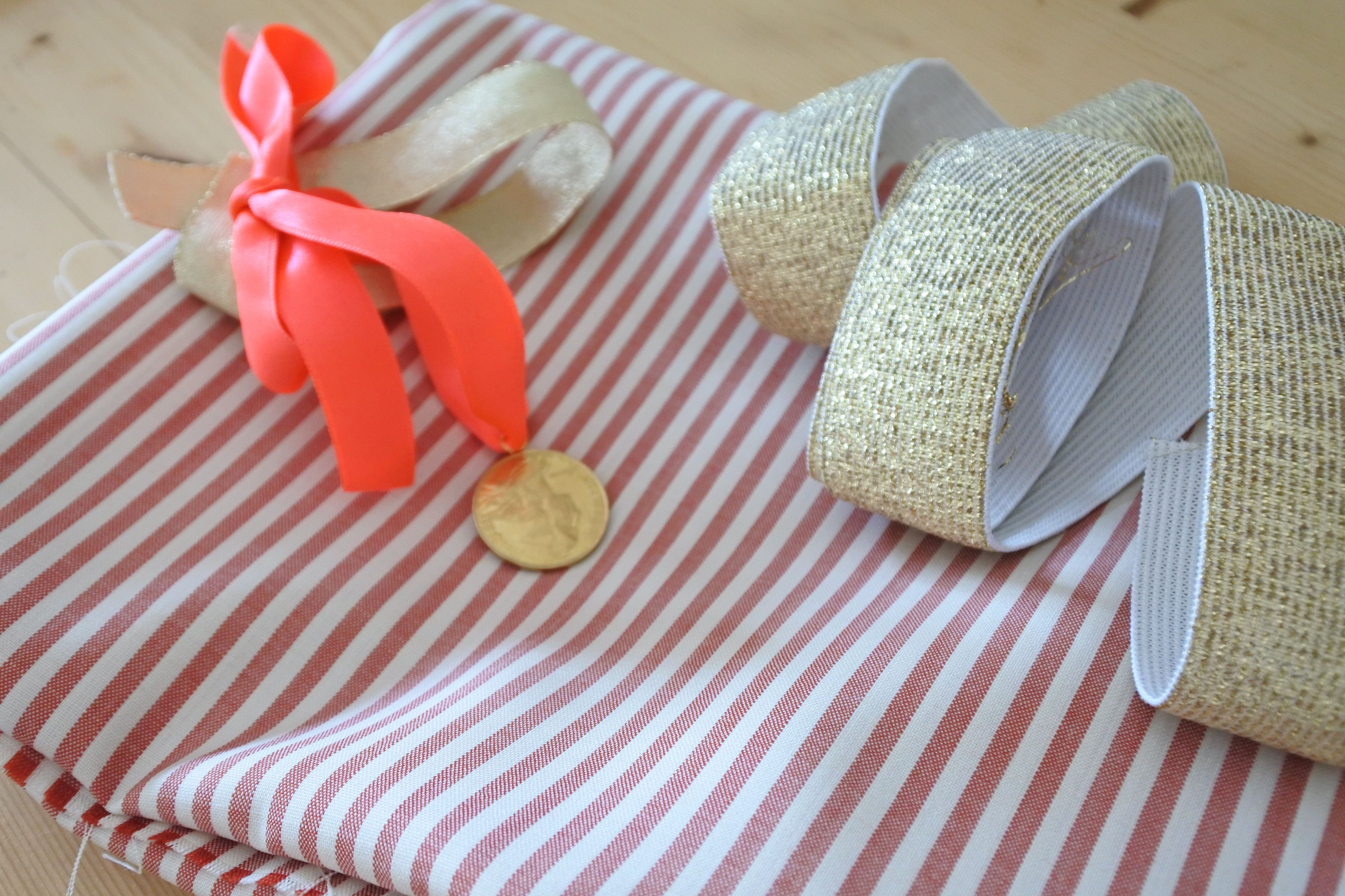 Ensuite, au niveau de la méthode, je me suis appuyée sur ce tuto, proposé par l’Atelier de la Création. Lors d’un premier test, comme indiqué sur le tuto, j’ai utilisé toute la largeur de la laize pour avoir la largeur de la jupe. Mais, au final, je trouvais les fronces trop épaisses. J’ai donc diminué la largeur de la jupe (je n’ai plus les dimensions exactes, mais cela doit correspondre à environ 1m de large pour le devant et 1 m de large pour l’arrière). Par ailleurs, j’ai réalisé des coutures anglaises pour les côtés de la jupe et ainsi avoir de jolies finitions. Et attention à bien utiliser un point zig-zag dès que vous piquez l’élastique !