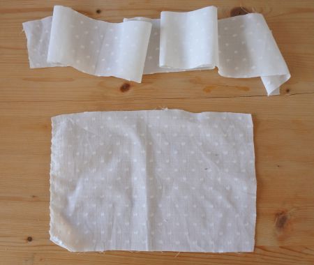 - Réalisez un mini ourlet sur l’une des longueurs de la bande “froufrous”