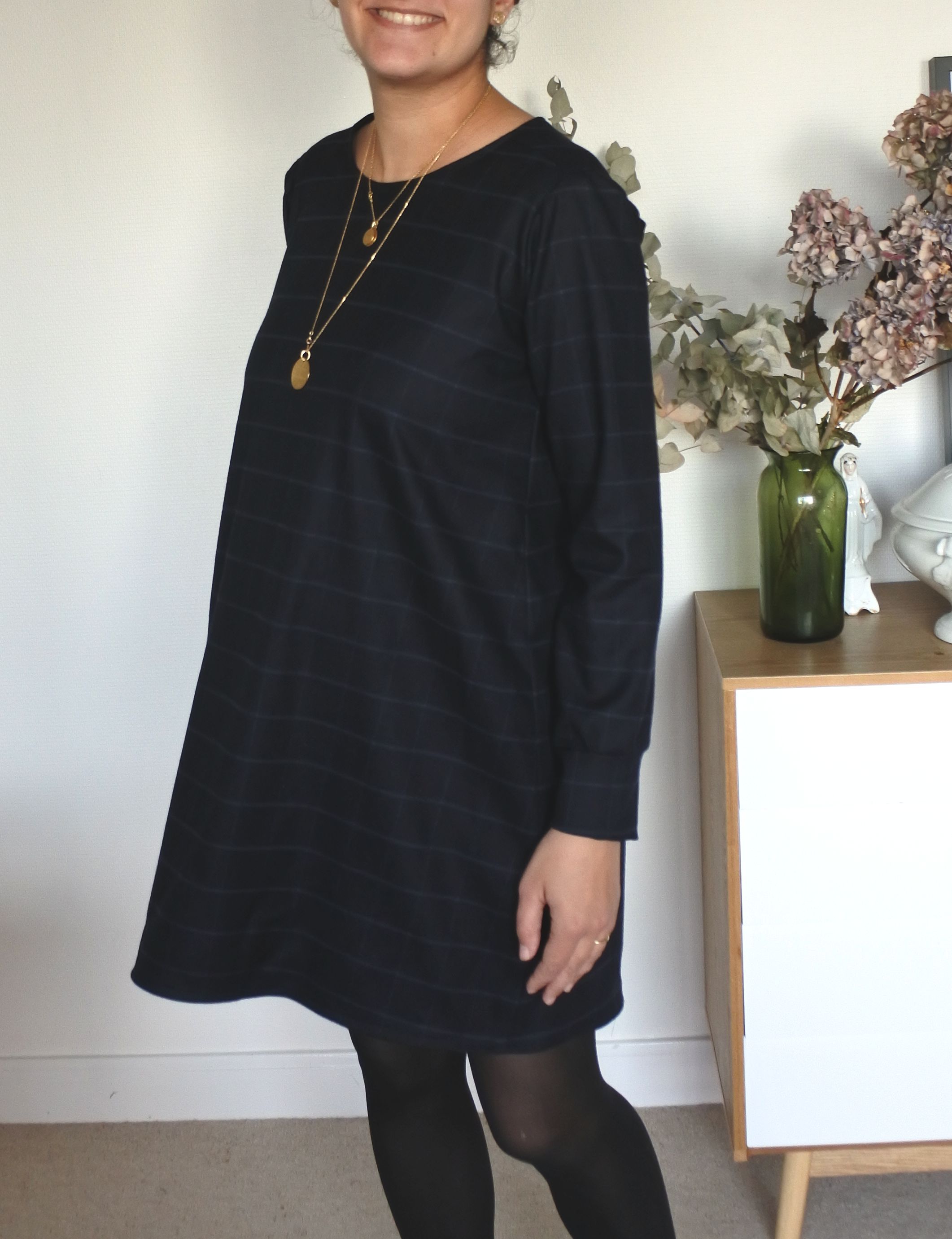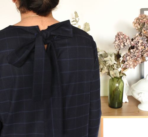 ](/uploads/2018/12/sixt7.jpg) Après la naissance de Constance, reprise de la couture tout en douceur avec un modèle que je commence à connaitre par coeur: la robe Sixtine ! Réalisée dans cette flanelle trouvée au Chat sur un Fil lors du CSF, j’ai choisi cette fois-ci de ne pas réaliser le col montant. A la place, j’ai creusé un peu l’encolure et conservé le noeud dans le dos, en passant une grande bande dans 2 entailles de boutonnières. Pour les finitions de ce col, j’ai préféré opter pour du biais plutôt que réaliser une parementure (plus rapide et facile!). Rien de plus à signaler sur Sixtine (vous trouverez une revue plus précise ici) si ce n’est la longueur des manches que je suis toujours obligée d’allonger! Quant à la flanelle, elle remplit bien sa promesse : douce, chaude, ne peluche pas et très facile à travailler! Un peu de minutie est seulement requise si l’on choisit de bien réaliser les raccords de carreaux! [