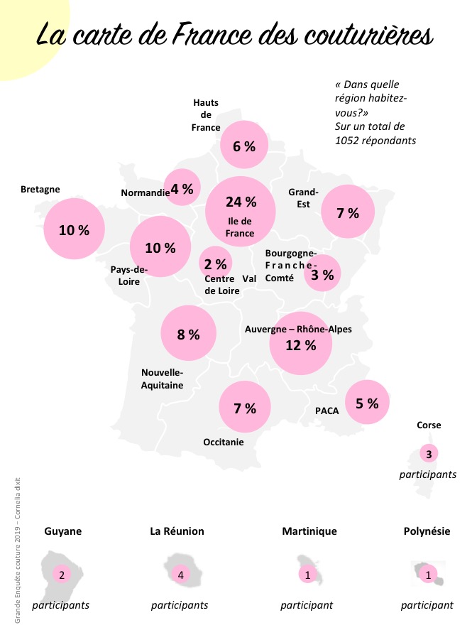 Un grand merci aux 1 064 répondants d’avoir pris un peu de temps pour participer à la grande enquête couture! Cette synthèse de nos réponses (puisque moi aussi, je me suis prêtée à l’exercice!) nous donne une toute première représentation de la communauté couture. Elle permet de prendre de la hauteur et de mettre des mots sur ce que l’on peut ressentir vis-à-vis de notre passion commune : des sentiments que l’on a parfois du mal à formaliser ou pas assez de temps pour analyser.