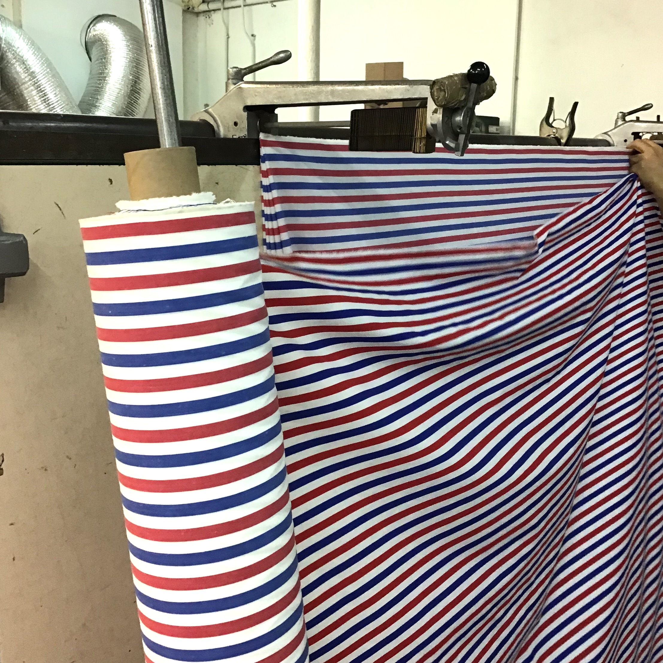 Le coupeur déploie le rouleau de tissu sur la parisienne