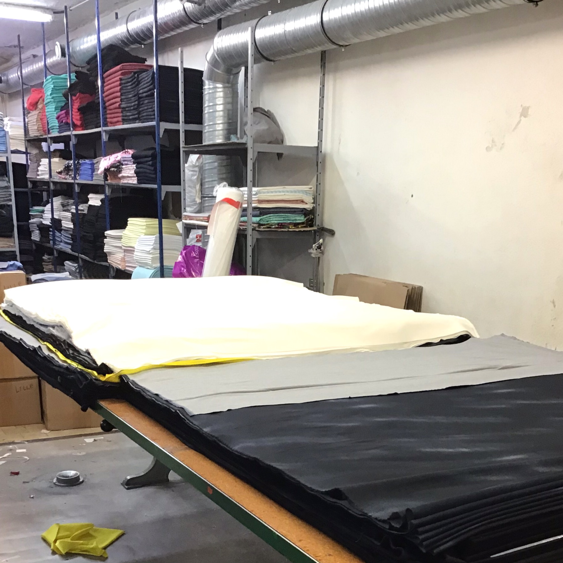 Les colis sont ensuite déballés et les tissus déroulés sur des tables de coupes , appelées “Parisiennes”. Les dimensions de celles-ci sont spécialement pensées pour préparer les coupons aux dimensions voulues. Lors de cette étape, les parisiennes sont placées en position verticales. Elles sont ensuite basculées à l’horizontal pour pouvoir travailler le tissu fixé à celle-ci.