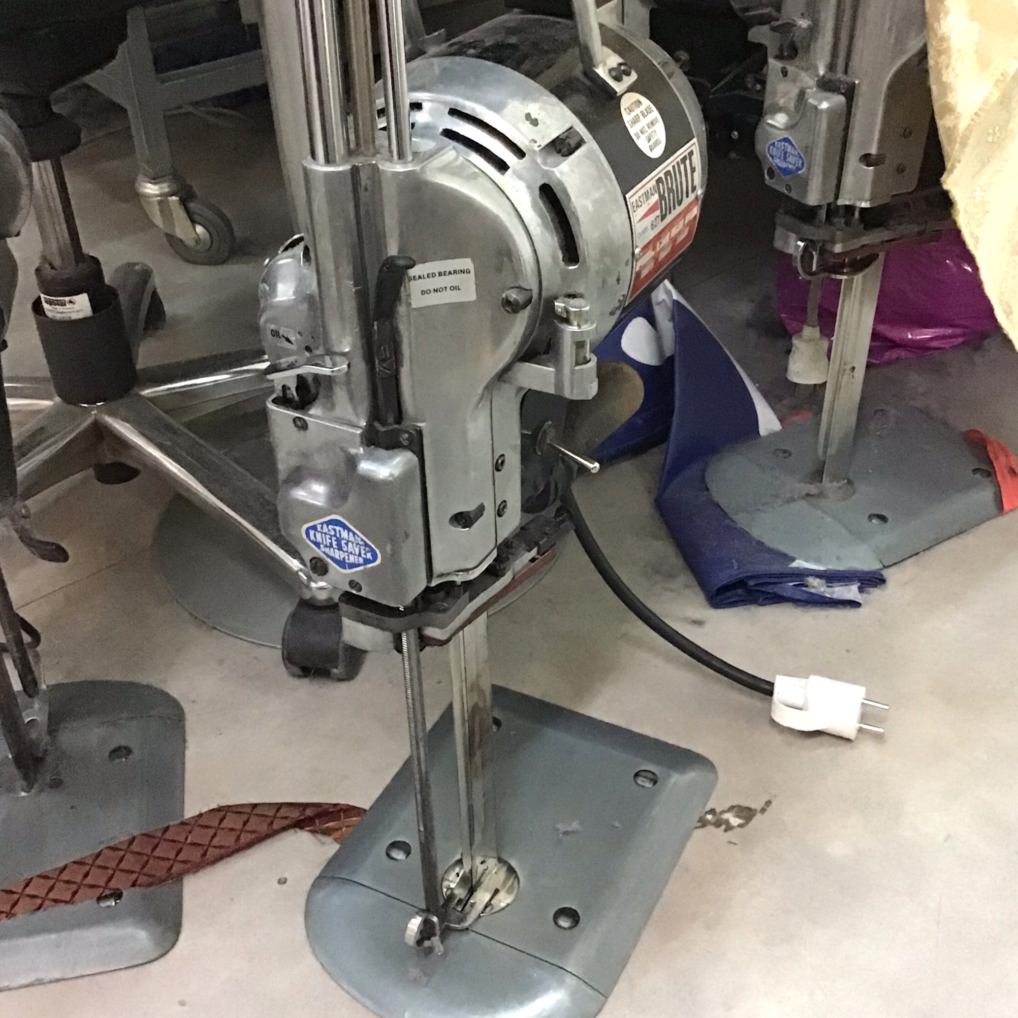 Le coupeur (un métier que j’ai découvert lors de cette visite et pratiqué là-bas depuis plusieurs dizaines d’années) monte alors sur la table et utilise une scie pour découper le tissu et créer le coupon.