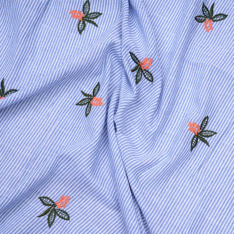 Coton rayé brodé fleuri - Pretty mercerie