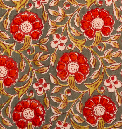 Rondeau aux fleurs orangées - Tissus indiens