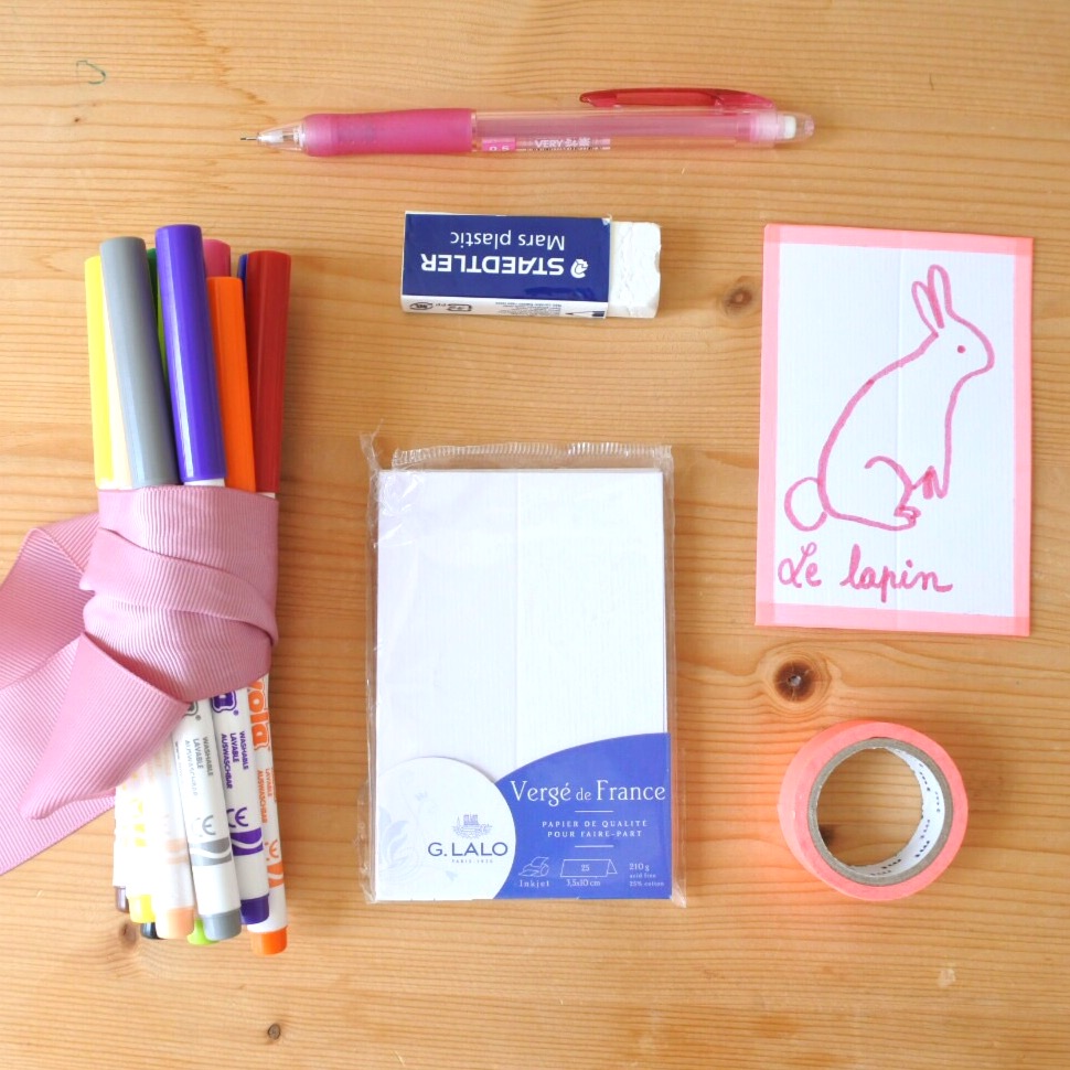- Des cartes en papier : j’ai hésité avec un format A5 et finalement je suis tombée sur ces cartons 7x10 cm qui me paraissaient bien (je ne trouve pas le lien, mais il est disponible en boutique Rougier et Plé)