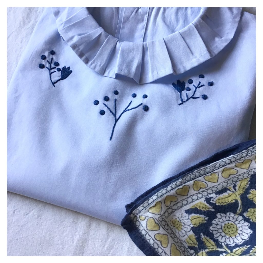 Ces dernières semaines, j’ai consacré mes pauses créatives aux besoins des enfants, avec la confection de petites blouses pour le printemps! Je voulais également mettre à profit ces projets, pour continuer à progresser en broderie : chaque blouse a donc été l’occasion de tester de nouvelles techniques et de rajouter de nouveaux points à mon répertoire !