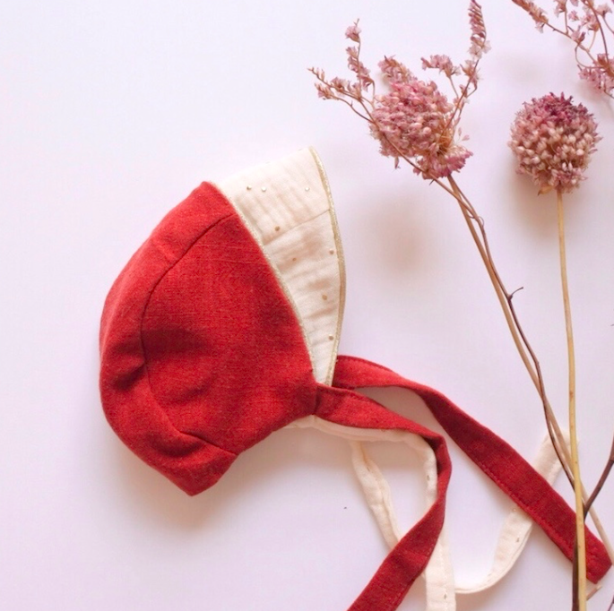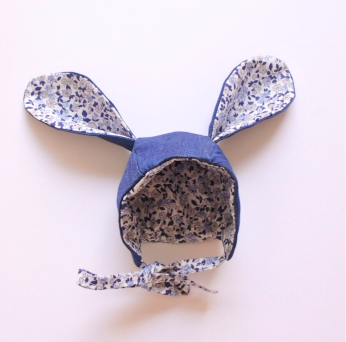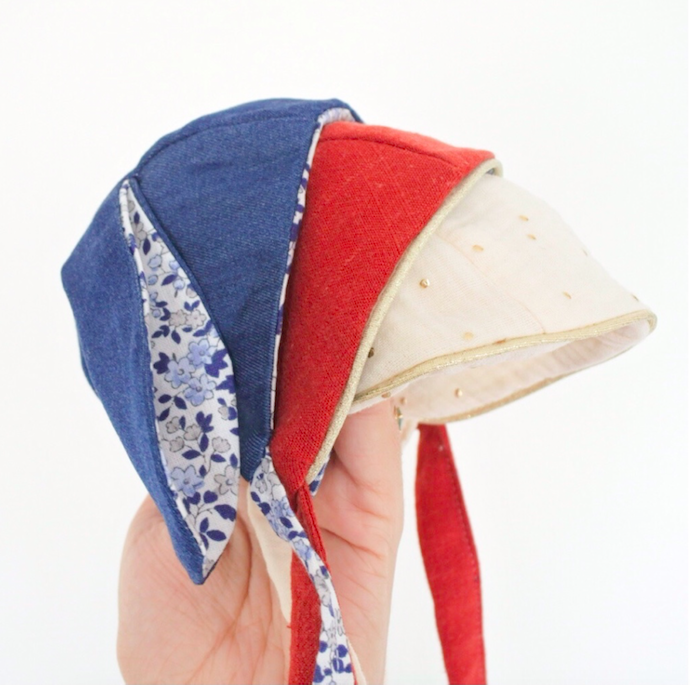 Vous pouvez choisir une finition avec les oreilles de lapin ou bien une version plus simple mais complètement réversible. Ce patron est idéal pour utiliser vos petites et jolies chutes de tissus : double-gaze, Liberty, lin… Le béguin est entièrement doublé : vous pouvez vous amuser sur les mix de tissus et même opter pour un joli passepoil pour souligner les coutures !