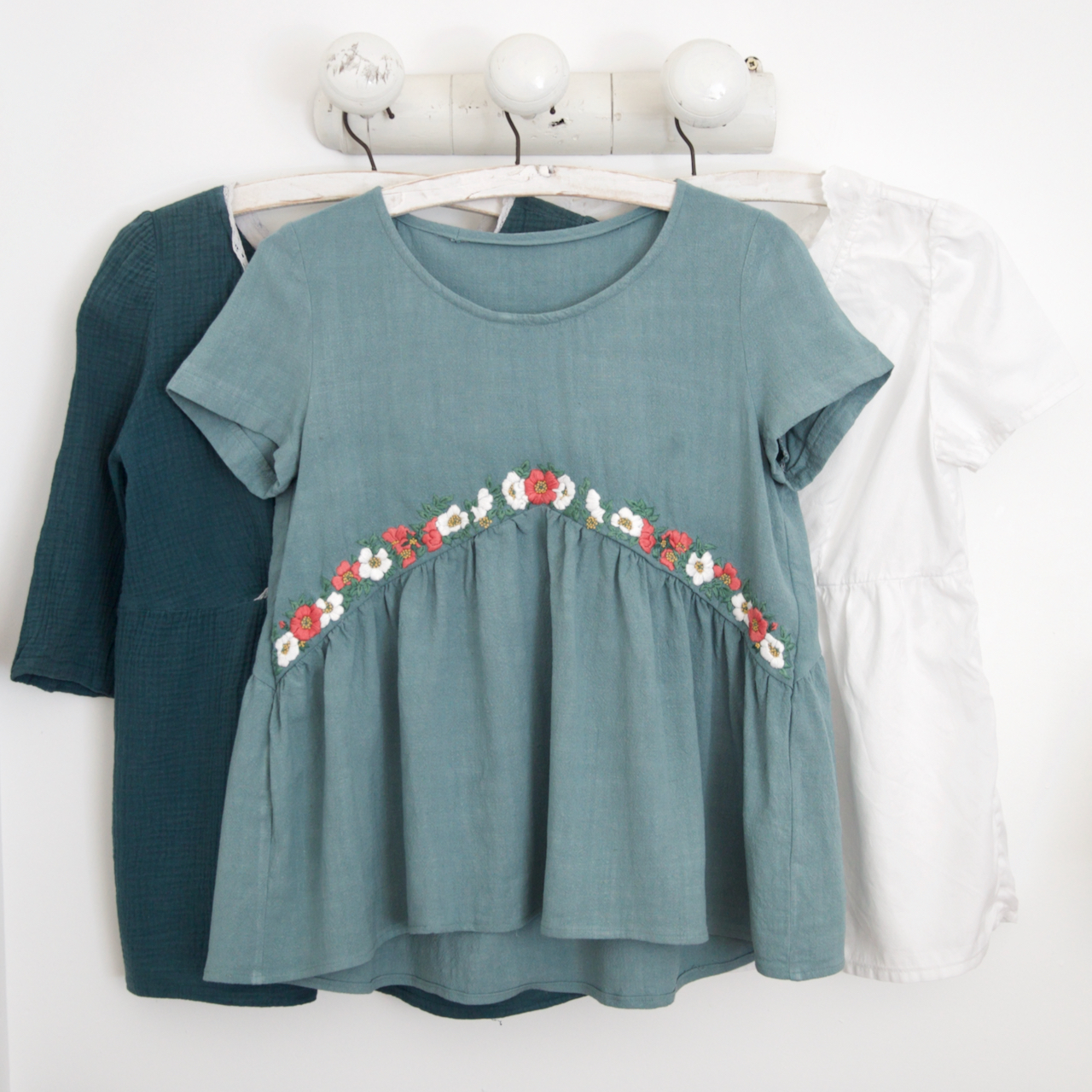 Vous pourrez appliquer “Rosa canina” un peu partout : la frise s’adaptera à vos encolures, ceintures, manches ou ourlets, et les petits bouquets indépendants qui l’accompagnent pourront être brodés un peu partout.