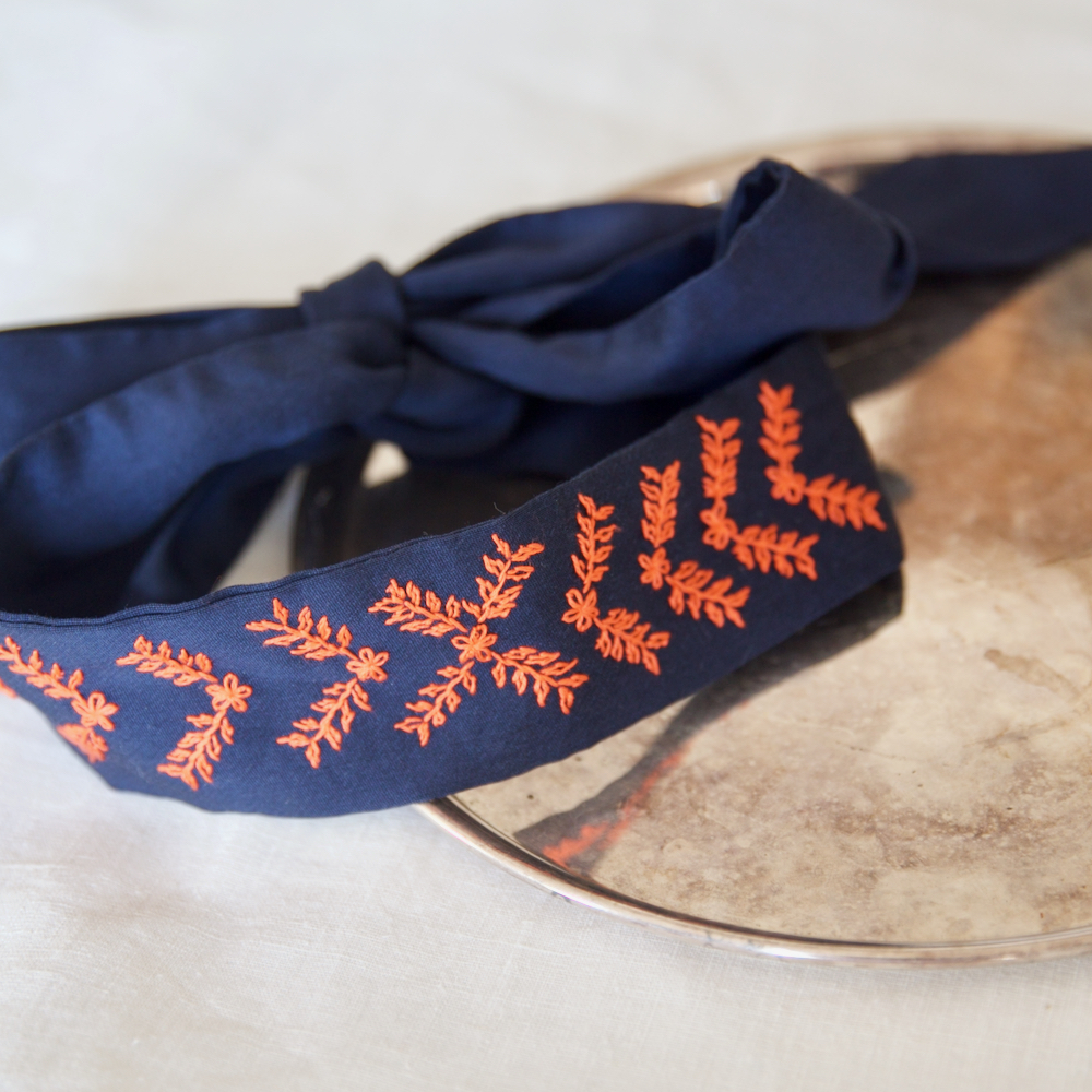 Un bandeau brodé avec l’un des motifs de la planche Hortus