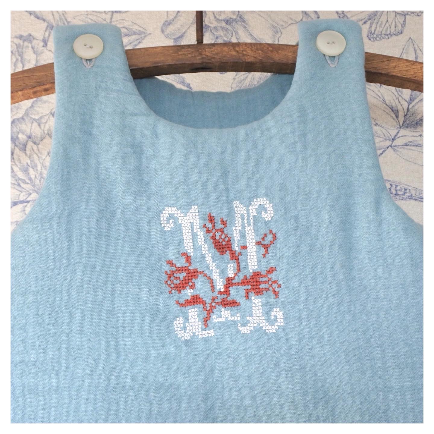 Au final, je suis ravie de ces premières pièces de la garde-robe bébé, qui resteront comme deux beaux souvenirs d’une joyeuse attente ! Les broderies apportent un supplément d’âme à ces turbulettes et j’espère pouvoir les conserver précieusement pour les prochaines générations ! Récapitulatif des fournitures utilisées : - Patron : Perlipo