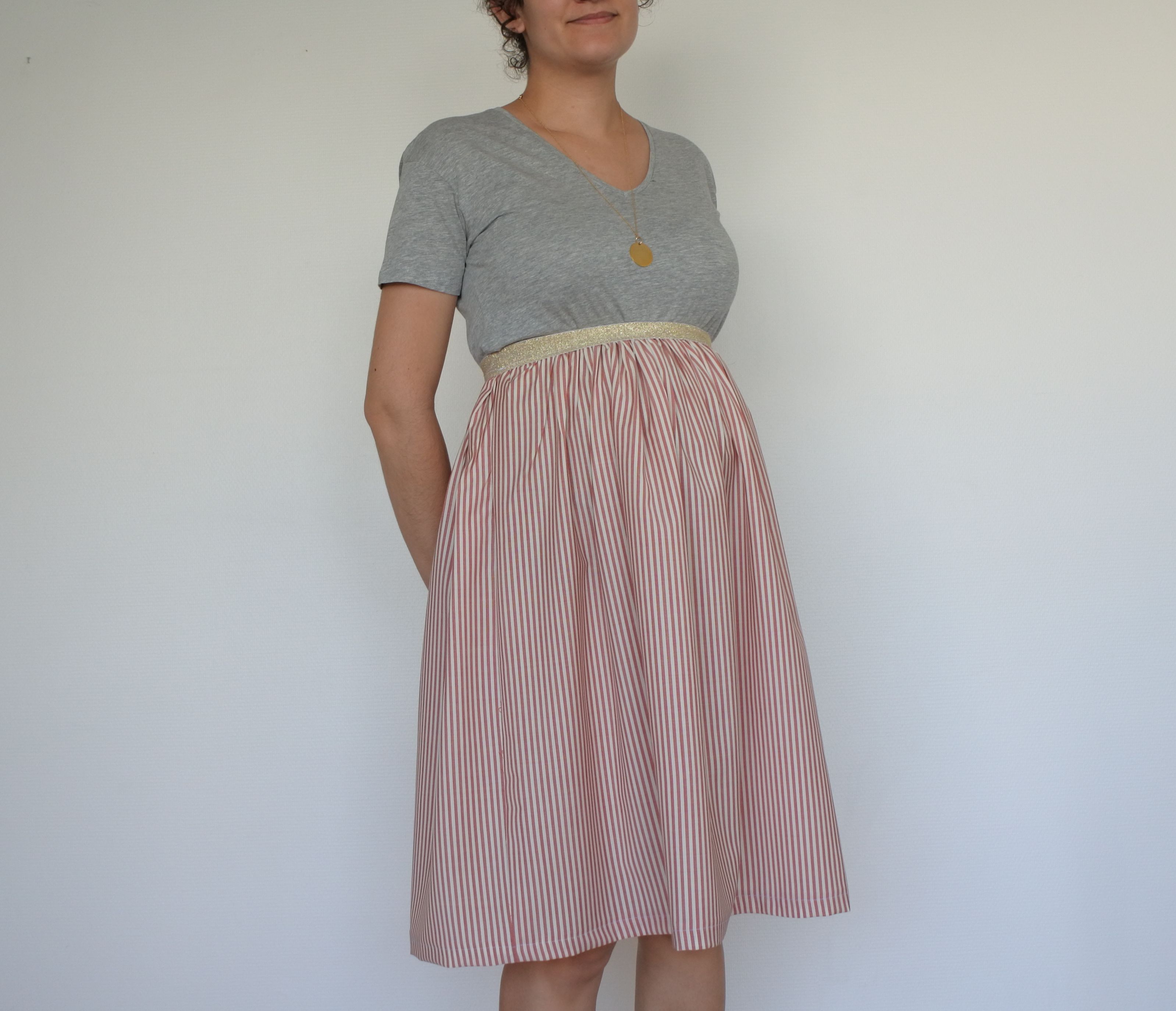 Dans cet article, je vous présente une jupe élastiquée toute simple. Cette pièce est facile à réaliser et donc accessible aux débutantes! En effet, il s’agit juste de 2 rectangles de tissus à assembler, puis à piquer sur un élastique. De mon côté, j’ai choisi de m’en coudre une car c’est bien pratique à porter pendant la grossesse! Matériel utilisé : Le tissu et l’élastique proviennent de chez France Duval Stalla. - Elastique (longueur à déterminer en fonction de votre tour de taille)