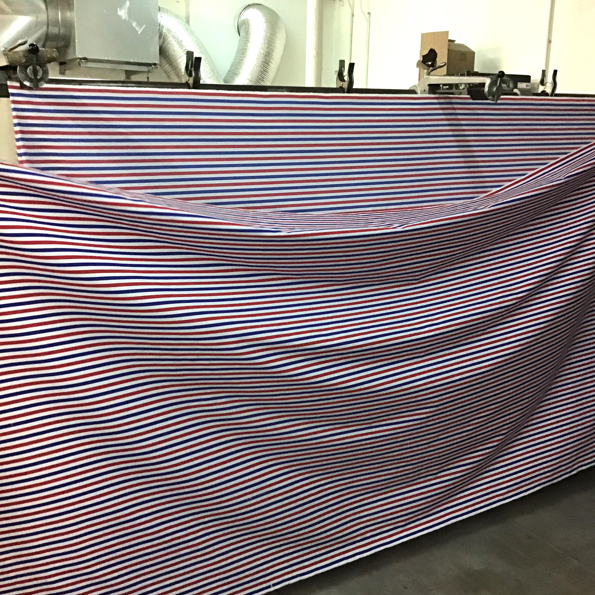 Le coupeur déploie le rouleau de tissu sur la parisienne