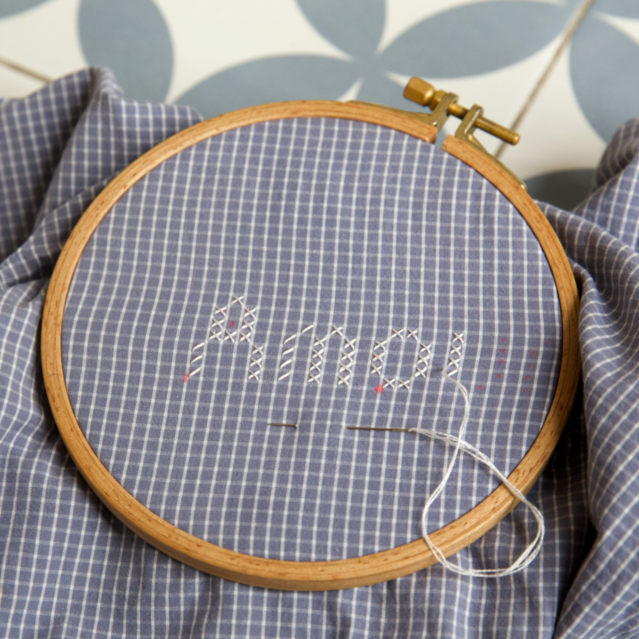 Un petit message brodé au point de croix